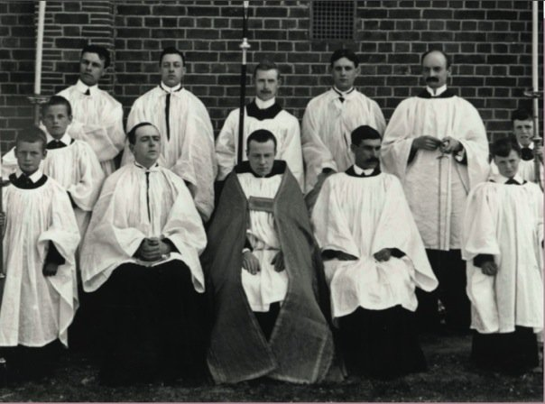 I should perhaps mention that a preference for Fortescue is often associated with a baroque aesthetic ('Those were the days when that divine baroque./ Transformed our English altars and our ways' as Betjeman put it), for Martin Travers over Ninian Comper, as it were. Fortescue himself, however, designed his own vestments in a decidedly gothic style and outfitted his serving team in what appear to be surplices in the full English shape more associated with Percy Dearmer (yes, that is great man himself in the middle).