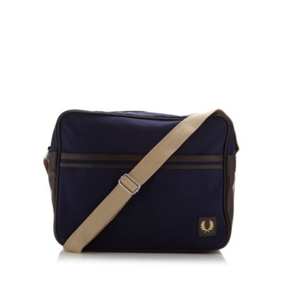 I don't know how it is in Great Britain, but IMO a plain, cross-body messenger bag for guys looks cool and un-pursey even if he keeps it about his person at most times.