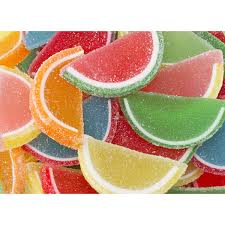Jelly fruit slices are delicious, and usually available anywhere bulk candy is sold. I love the mint ones, and watermelon, and lemon..... and the crunchy sugar edges.